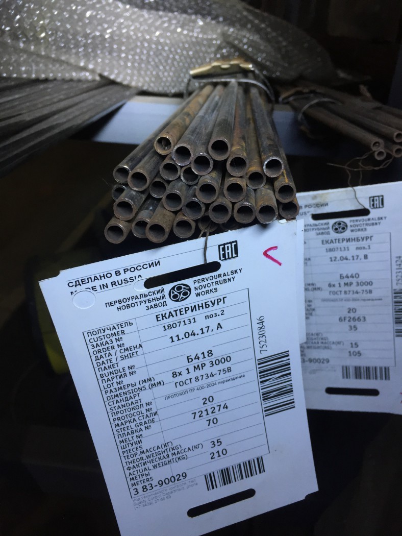 Сертификат на трубу ГОСТ 8734-75, 8х1 сталь 20